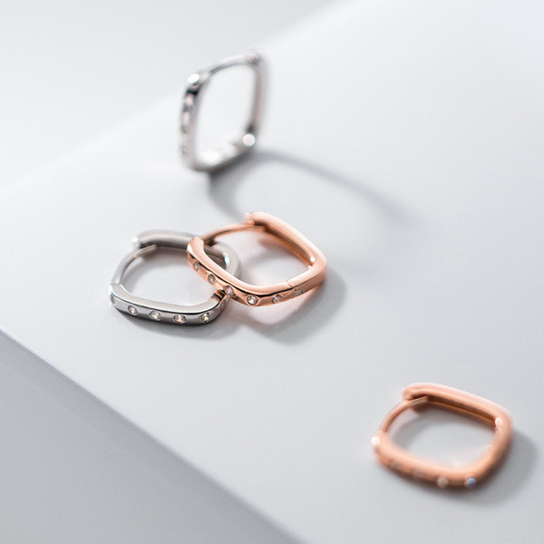 s925 sterling silver chic square simple rhinestone unique short earrings
