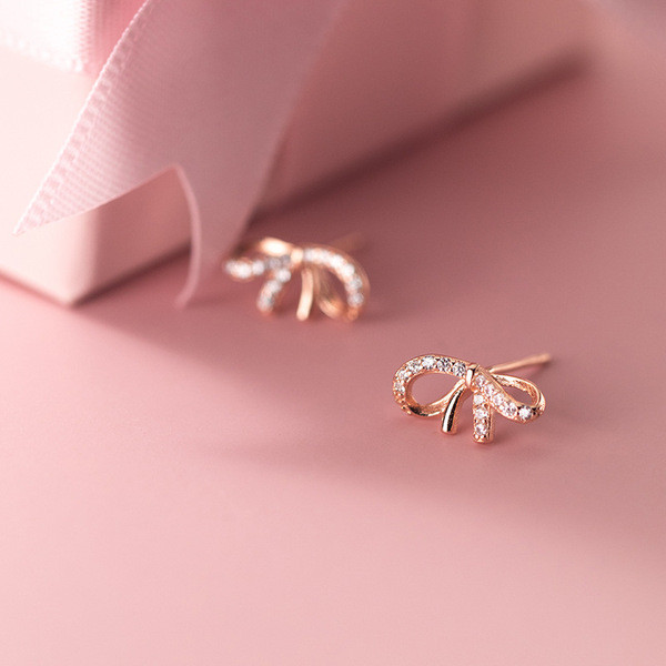 s925 sterling silver chic simple bow sweet cute rhinestone earrings