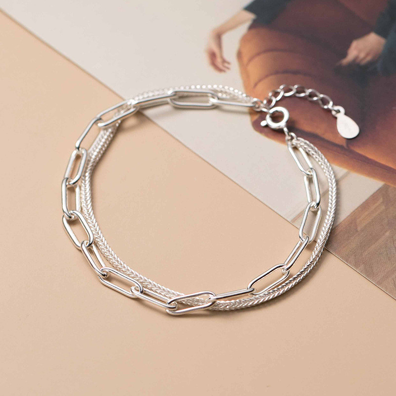 trendy s925 sterling silver silver simple bracelet