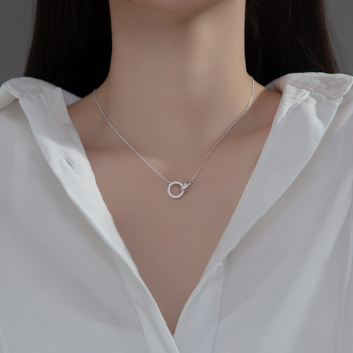 925 sterling silver fashion rhinestone circle necklace