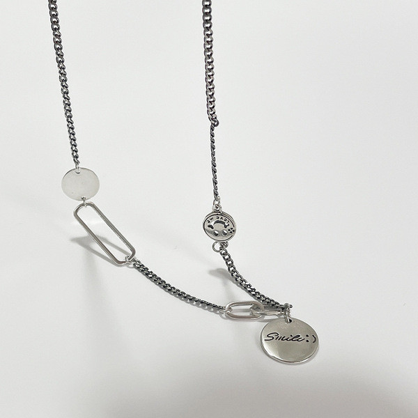 s925 sterling silver smilingface geometric necklace